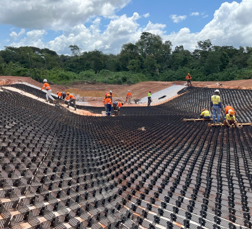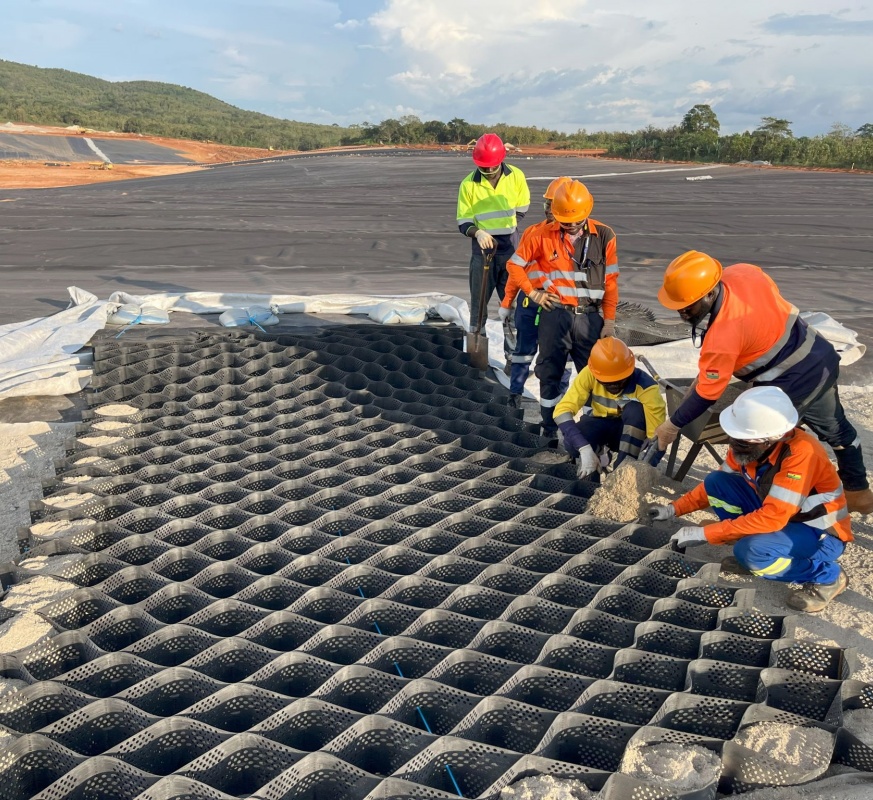 這些蜂窩狀的三維蜂窩式圍護(hù)系統(tǒng)由高密度聚乙烯 (HDPE) 制成,旨在改善軟弱土壤的結(jié)構(gòu)完整性。